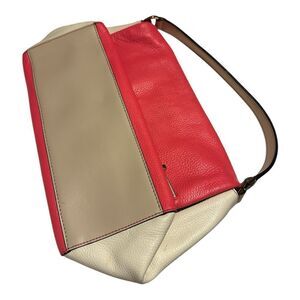 • Converible crossbody bag in color-blocked pebbled leather & smooth leather trim.