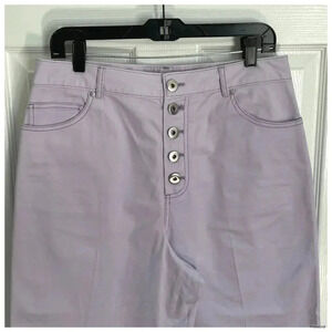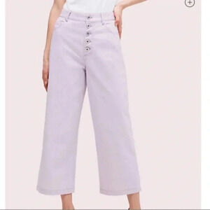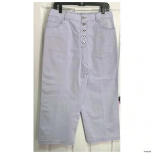 Casual five button front closure wide legged cropped jeans in a “frozen lilac” color. Actual stock photos. No visible flaws and in excellent used condition!! So hard to photograph.