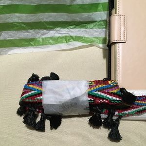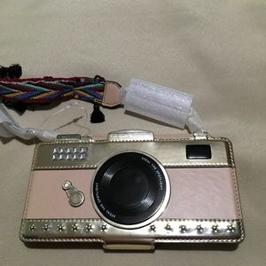 Brand new with tags. Kate Spade steal the spotlight camera I Phone 6/7 folio crossbody case. Leather and trimmed in gold. Lined in soft velvet, removable tassel guitar strap. Two CC slots. Strap drop is 16.25”. I phone case is 5.5W X 3” H. Very cute. Great gift.