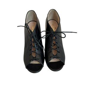 Black lace-up peep toe booties in luxurious leather