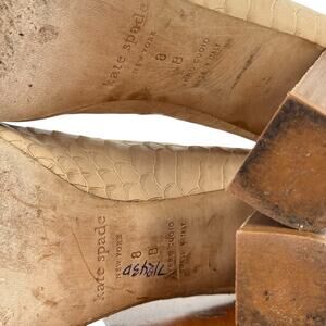 Kate Spade Inella Heels Women SZ 8 Beige Lace Up Peep Toe Snakeskin Leather Luxe