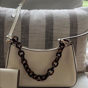 Chic Kate Spade bag and wallet in ivory. Features a bold chain accent.