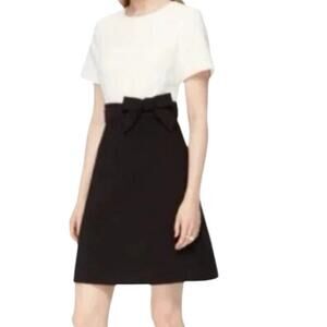 Kate Spade Ivory Black Colorblock Bow Fit and Flare Dress Size 6 Preppy Classic Formal Chic Modest Monochrome Viscose