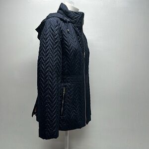 Kate Spade Jacket Coat Chevron Quilted Full Zip Hooded Navy Blue Size M Medium