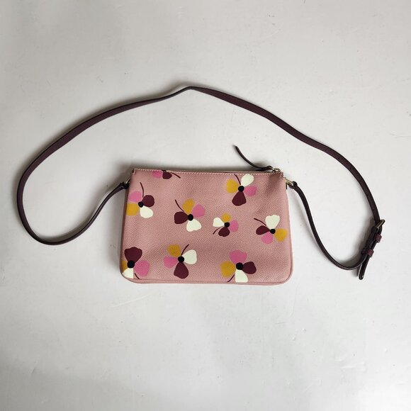 Kate Spade Jackson Leather Triple Gusset Dusk Buds Pink Floral Crossbody