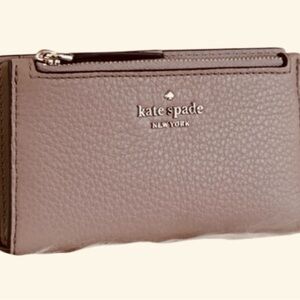Kate Spade Jackson Small Bifold Pebbled Leather Wallet in Muted Taupe NWT