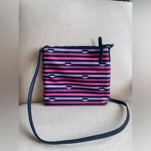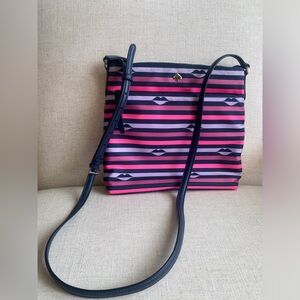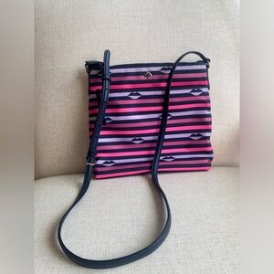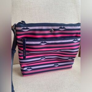 Kate Spade Jae Nylon Flat Crossbody Hand Bag Striped Lips NWOT