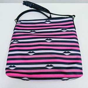 Kate Spade Jae Nylon Kiss Lip Print Crossbody Bag Navy Blue Lavender Pink Zip