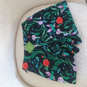Look closely to see the tiny hummingbirds hidden on this pair of chic shorts cut from luxe, slightly textured jacquard covered with flowers in full bloom. Side-zip closure. 97% cotton, 3% spandex. New with tags