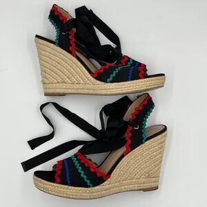 Kate Spade Javelina Ric Rac Trim Espadrille Wedges Sandals 10.5