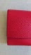 Beautiful Chili red embossed leather wallet with light gold tone hardware, leather name plate, exterior back slip pocket, button flap closure.