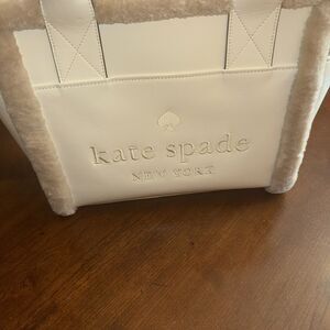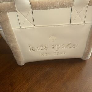 Kate Spade Jett Faux Shearling Fur Winter White Meringue Logo Large TOTE KE517