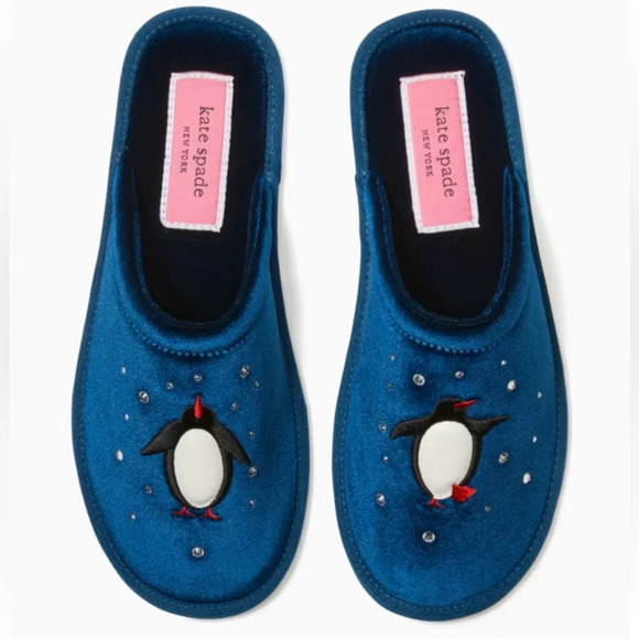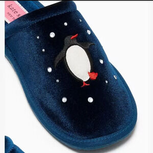 Kate Spade Jolie Penguin Slippers Size 6 Blue Velvet Rhinestones