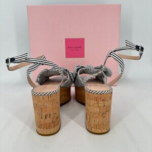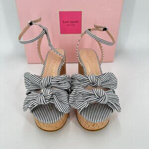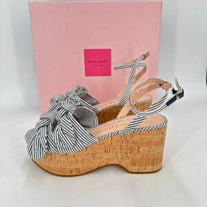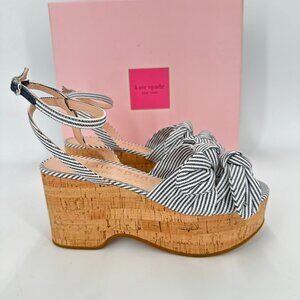 Kate Spade Julep Double Bow Platform Wedge Sandals sz 7.5 Navy Stripe Cork Ankle