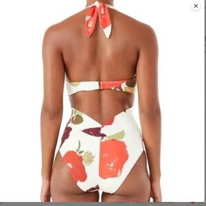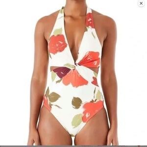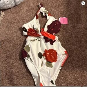 Kate Spade Just Rosy Floral Knotted Halter One Piece Swimsuit size M NWT!