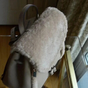 Kate Spade K9398 Leila Flap Backpack Fur Faux Shearling Light Sand