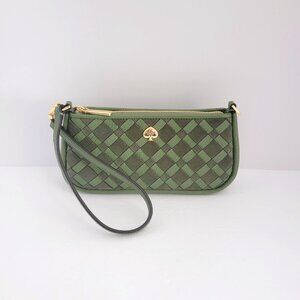 Kate Spade KM148 Kayla Woven Leather Convertible Wristlet Handbag Cedar Stand
