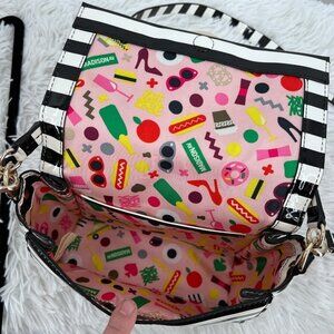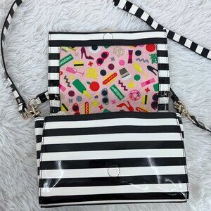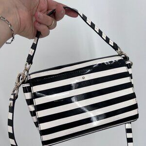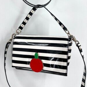 Kate Spade KSNY X Darcel Tobyn Big Apple Crossbody Bag, Black Cream Striped