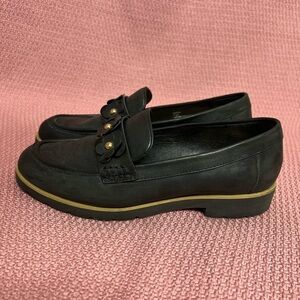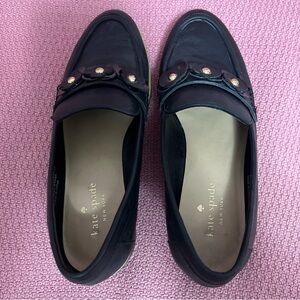 Kate Spade Karisa Black Leather Loafers, black floral/gold accent 7 1/2