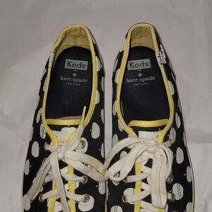 These are super cute collab by Keds and Kate Spade. Has gold Kate Spade accent logo on back heel and gold lace ends. Great addition to the wardrobe to accent the outfits.