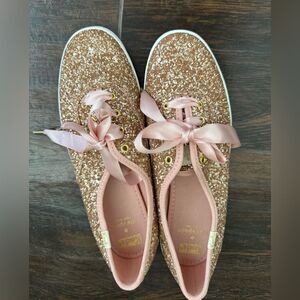 Kate Spade Keds Rose Gold glitter sneakers nwot sz 8
