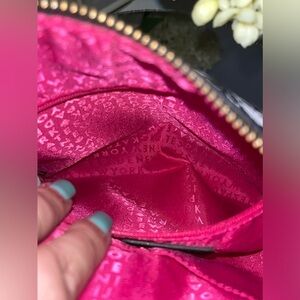 Interior: 2 open slip pockets, 1 zipper compartment. Pink Kate Spade fabric lining. Has Kate Spade Logo and Kate Spade Tag inside.