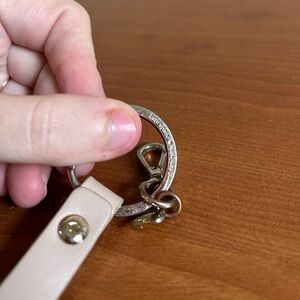 Kate Spade Keychain Fob Blush Cream/Red Leather Silver Accents Hook loop Travel