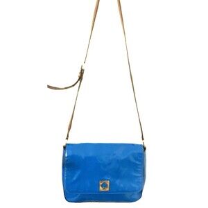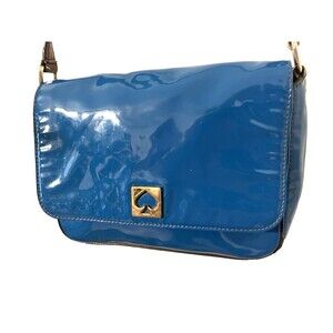 The Kate Spade Aqua Blue Patent Leather Shoulder Bag is a stylish and versatile accessory for travel, casual outings, workwear, or business. Made from high-quality patent leather with a solid blue exterior, this rectangular bag features a magnetic and snap closure, brown leather shoulder strap, and silver hardware accents. The medium-sized bag has inner pockets for organization and an adjustable cross-body strap for added convenience. The classic yet colorful design makes it a perfect choice for those looking for a preppy flair in their wardrobe.