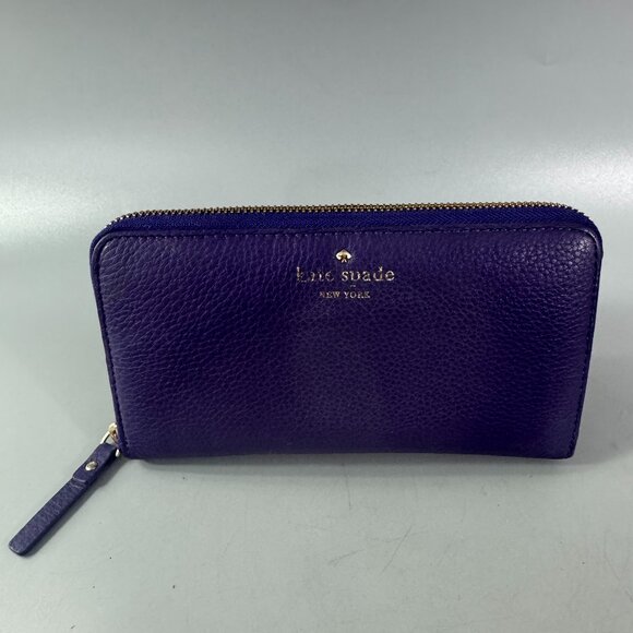 Kate Spade Lacey Cobble Hill Dark Violet Leather Zip Clutch Wallet (Ret$198)