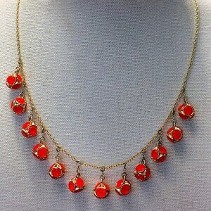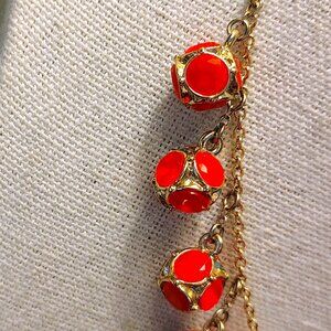 Kate Spade "Lady Marmalade" Orange Crystal Ball Charm Fringe Necklace 18"