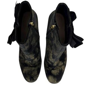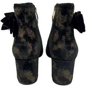 Kate Spade Langley Velvet Black Gold Bow Ankle Booties Size 9