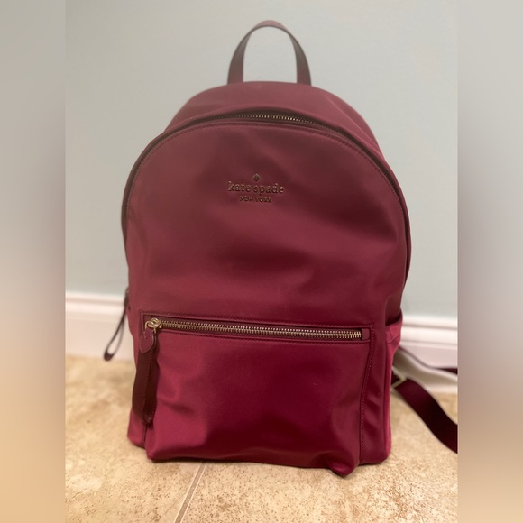 Beautiful burgundy large Kate Spade backpack. Never used. 11” W x 15.2”H x 6”