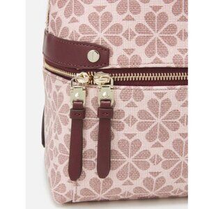 Kate Spade Large Backpack Flower Jacquard Beige Coated Canvas Leather Pockets