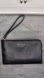 Chic black wristlet with a textured finish. Features a sleek design and silver logo detail. Ideal for versatile use.