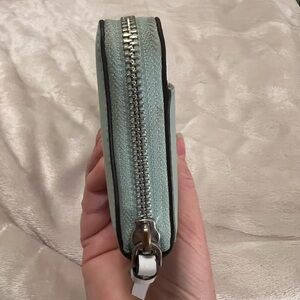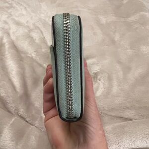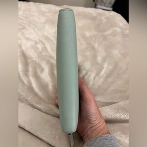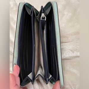 Excellent used condition. A few discolored spots along the zipper area, but other than that, clean clean.