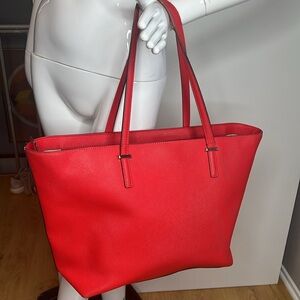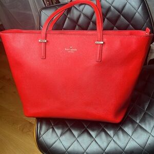 This is a beautiful Kate Spade Large Red Cedar Street Zip Top Shoulder Tote Bag. Goldtone logo hardware. Minor scuffs and some wear to the corners. Very clean interior no odors. No tears.