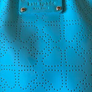 Unveil your chic style with the Kate Spade New York Large Swingpack Crossbody bag, a perfect blend of elegance and practicality. Crafted from durable PVC, this teal blue accessory is a vibrant statement piece that complements any ensemble. Its spacious large size ensures you can carry all your essentials with ease. The bag features a contrasting beige lining that adds a touch of sophistication to the interior, while the blue PVC strap provides both comfort and durability for everyday wear. Designed for the modern woman, this crossbody bag is a versatile addition to your collection, whether you're running errands or enjoying an evening out.
