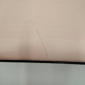 Minor scuff mark on the front; approximately 2 inches long, three light blue line marks on the back, light stains on the inside from normal use, . Still in great condition.