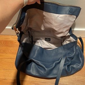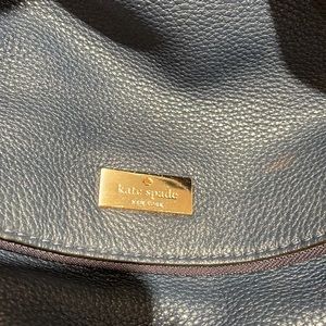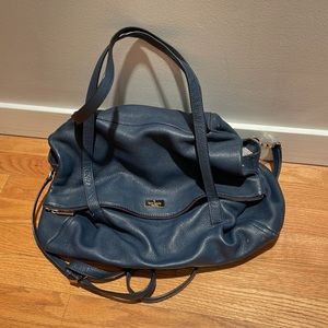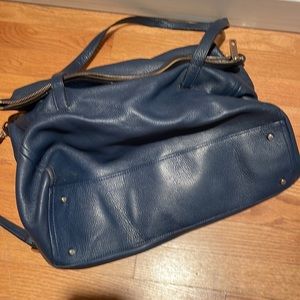 Large navy tote with lots of room. Could be used for work or traveling! Some stains on the inside.