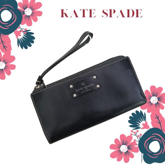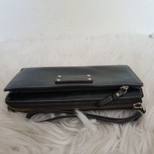 Kate Spade Large Wristlet Carryall Wallet Black Pebbled Leather Gold