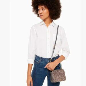 This sparkling crossbody is perfect for adding a touch of glam to your everyday look! The chic gunmetal glitter fabric is accented with gold-tone hardware for a touch of luxury. This bag is designed for convenience and style.