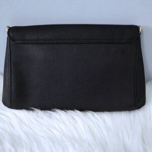 Excellent/Like New Black Saffiano leather crossbody bag by Kate Spade. Features a sleek gold shoulder chain strap and the matching adjustable kate spade Saffiano black leather crossbody strap.