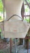 Cream or beige tone leather handbag with single handle at top of bag and removable crossbody strap. Gold hardware. Light wear around the brand logo hardware at the front highlighted in photo. The mark in the first photo to the gold hardware is a reflection it can be seen in video that there's no actual dark spot on the gold logo. Cloth interior. Some markings at the bottom of the cloth lining to the bag highlighted in photo. Magnetic closure.