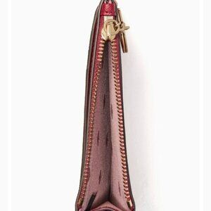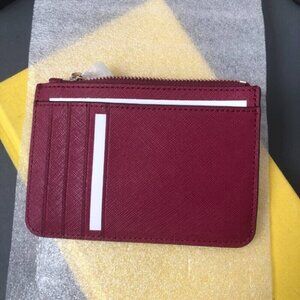 Kate spade zip wallet. Color is cranberry cocktail. Last two photos from website because I didn’t want to handle the wallet too much as to keep it new. Color from real life pictures is more accurate than website. saffiano four credit card slots floating logo. Measures approximately 3.4" h x 5" w dust bag not included