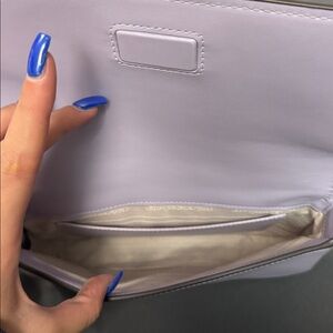 Elegant lavender shoulder bag. Sleek design with adjustable strap. Perfect for any occasion.