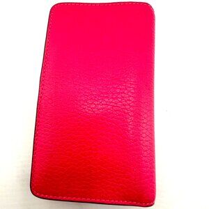 A classic and slim bifold wallet from Kate Spade in a gorgeous, vibrant pink pebbled leather. Features multiple card slots, an ID window, and bill compartments.