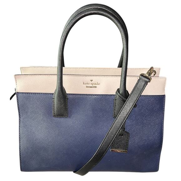 Kate Spade Leather Cameron Street Candace Navy Blue & Cream Crossbody Satchel