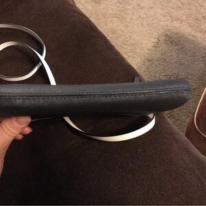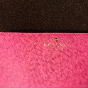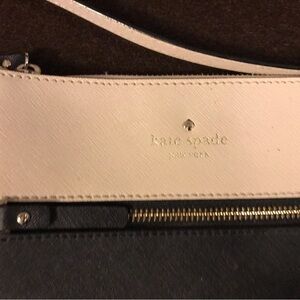 Great color block purse and brite pink wallet in great condition no marks on wallet but purse has small stains in front zipper pocket great polka dotted lining with adjustable strap