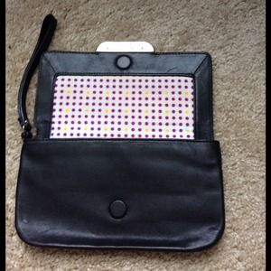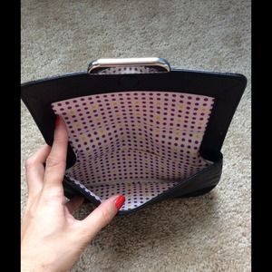Authentic Kate Spade Wristlet purchased at kate spade.com. Has polka dot canvas lining, silver hardware and a magnetic closure. In very good condition. 8.5 inches wide x 5 inches height.
