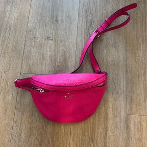 Bright pink pebbled leather fannypack with adjustable crossbody strap. Satin lining with slots for cards. Worn a couple times and in like new condition. Comes from smoke free and pet free household!